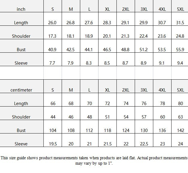 | inch | S | M | L | XL | 2XL | 3XL | 4XL | 5XL |