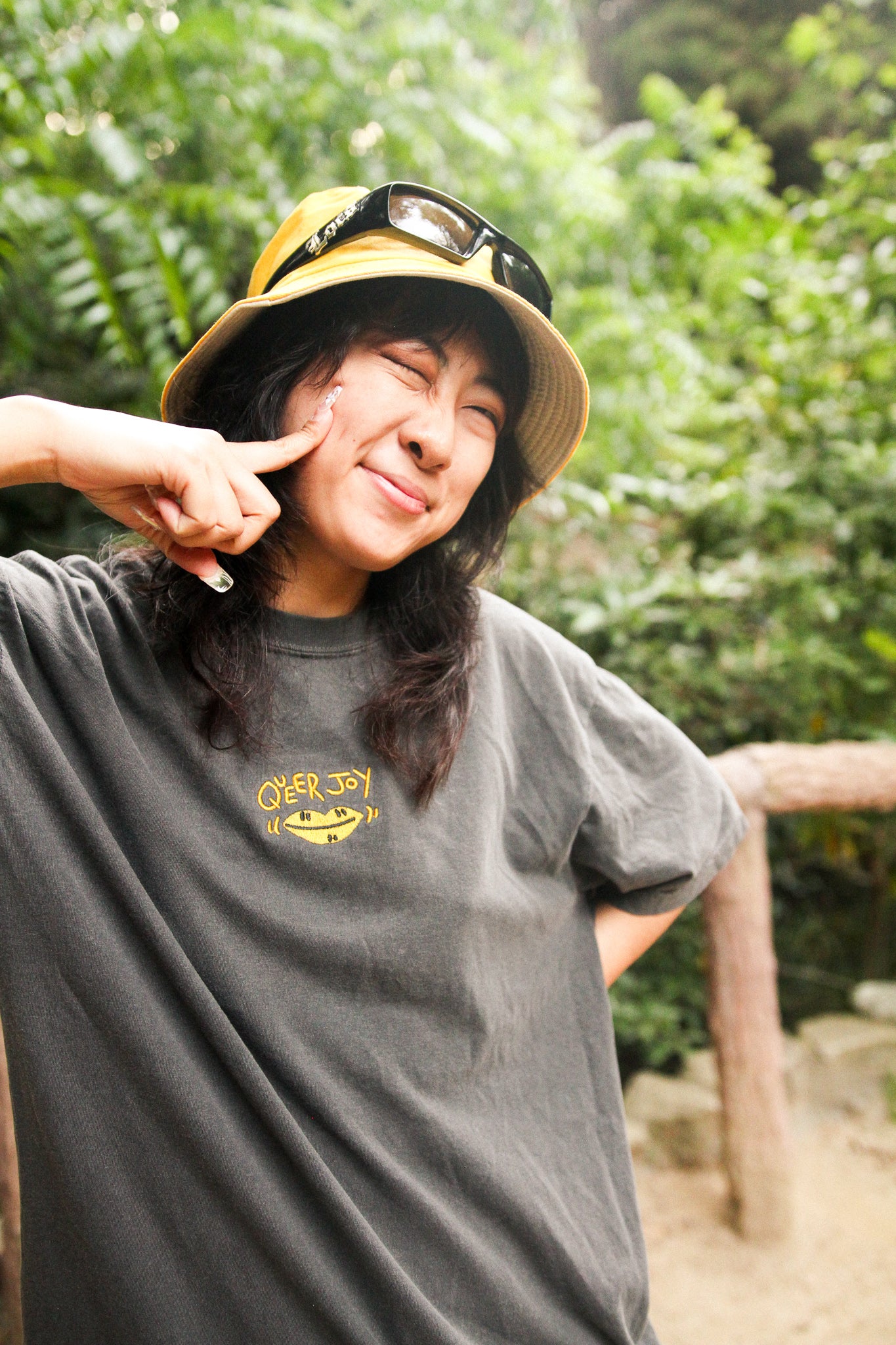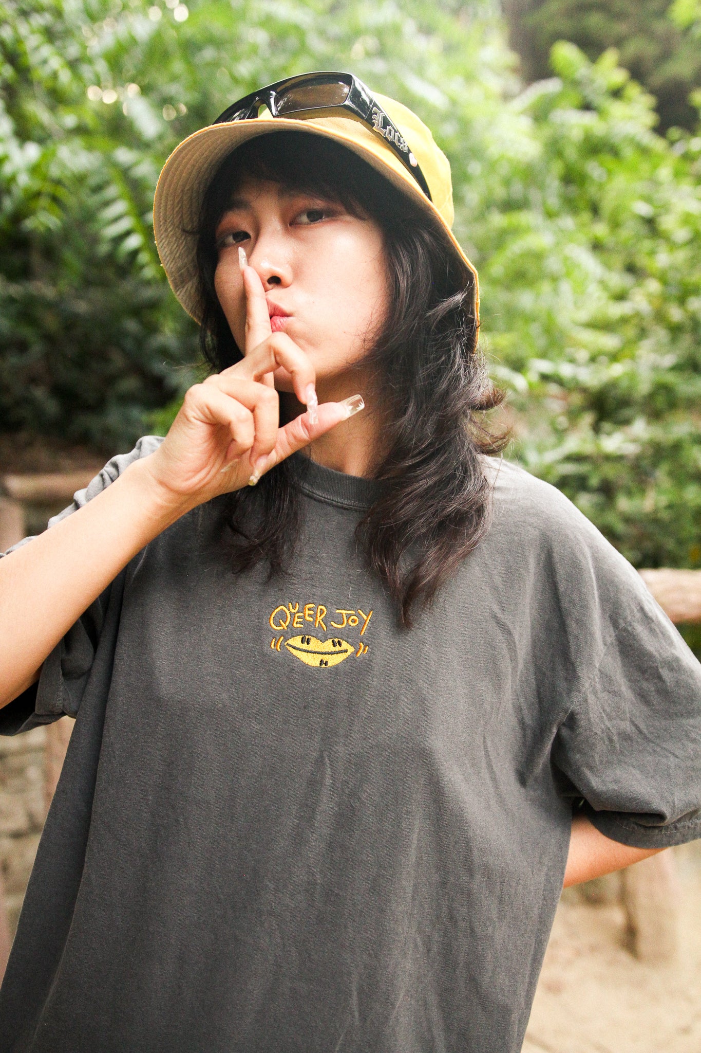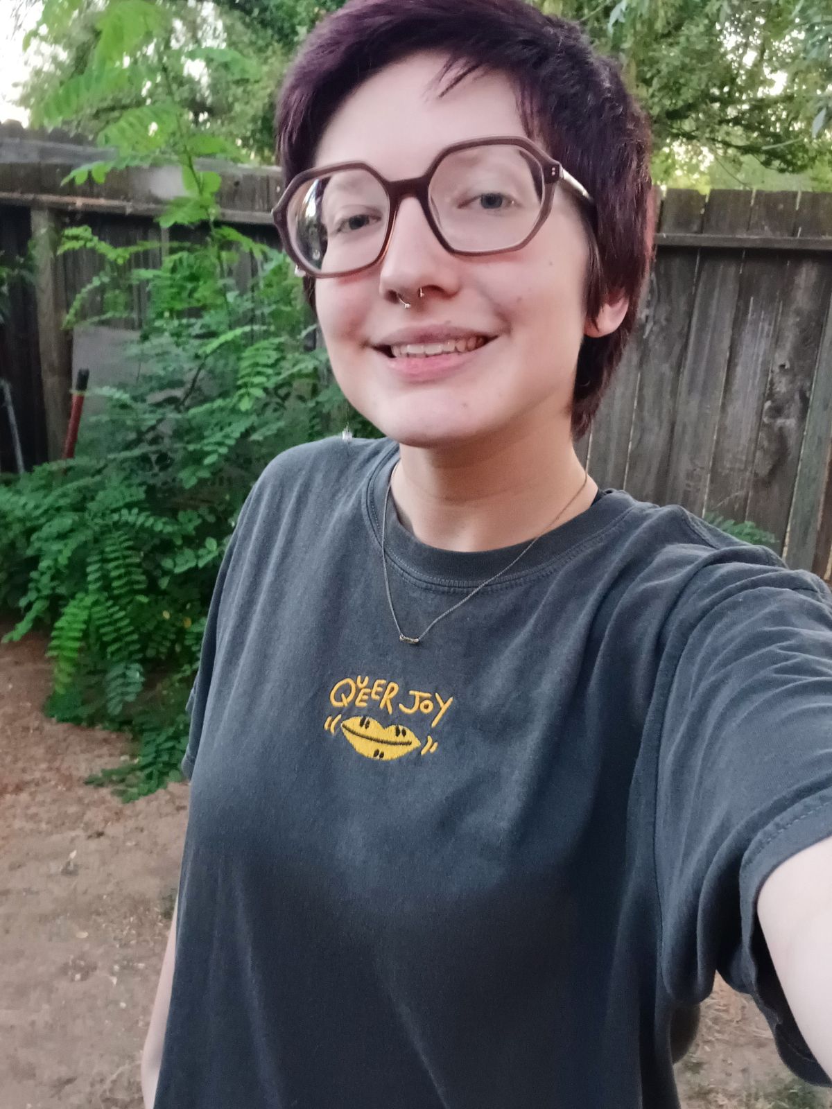 I love the Queer Joy Embroidery Shirt, it's my new go-to shirt! The t-shirt is super comfy, the embroidery is very sturdy. I got a large because I prefer an oversized fit. Also I love the bright yellow matches the laces on my docs <3