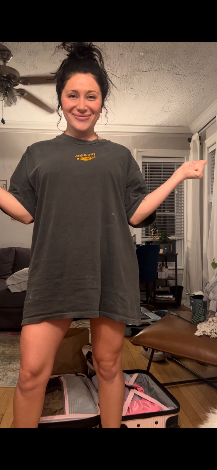 Super cute shirt, and the shade of grey is very lovely. Was surprised at how comfortable the material is - I got a size M and while I wish it was slightly baggier (I could’ve sized up) it’s overall a great fit and true to size !