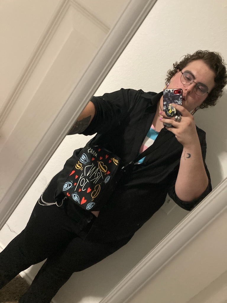 Made of durable cloth, the satchel is perfect for carrying all your Trans Joy essentials, including your pride flags, sunscreen, and water bottle.